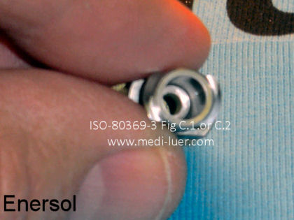 The ISO 80369-3 Figure C.1 and Figure C.2 Female Reference Connectors have design details which are not specified in ISO 80369-3 and which allow connection to test equipment. These design details vary by manufacturer. With the addition of an adapter the various designs will all work with the Enersol Test Equipment. The photos above help illuminate these design differences.