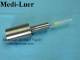 The Medi-Luer gage product-contact-portions are made of 440C Stainless Steel and hardened to Rockwell C-scale: 56 to 58. The weighted portion made of 303 Stainless Steel. The handle of the non-weighted version is made of Aluminum and is AGD Taperlock Handle #00 size, The use of hardened steel for gages is is not a requirement of any specification; however, we consider it best-practice to use hardened materials for gages so that you have the most reliable inspection tool. If you must have this data certified; this is considered a special request. There will be an extra cost and the lead-time for the gage may double.